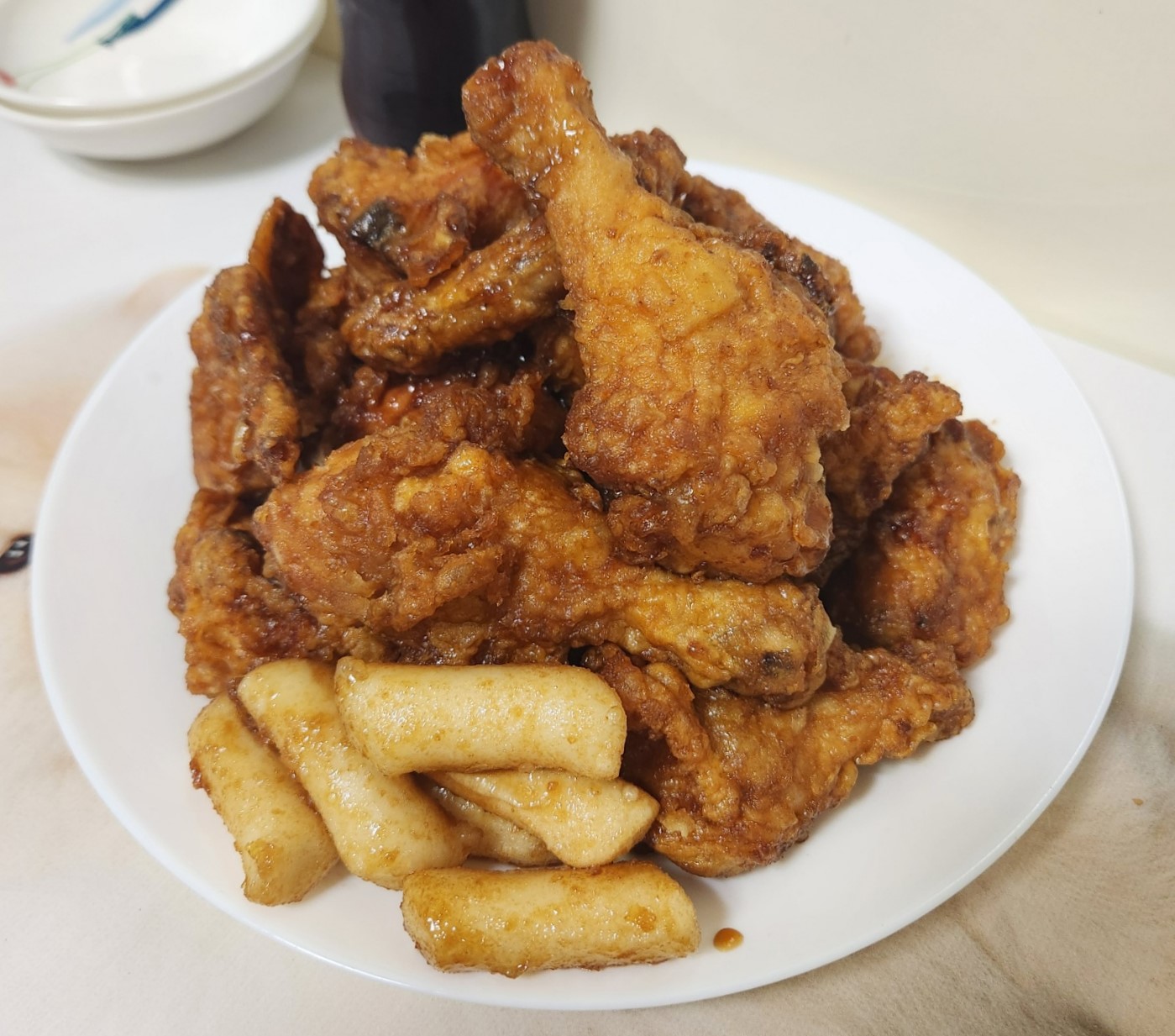 처갓집 양념치킨 광안해변점은 요기요 우수매장답게 댓글 이벤트 참여를 안 해도 떡사리를 추가해 줍니다. 양념도 치킨 하나하나 잘 발려있고, 아래쪽에 양념이 고여있을 정도로 풍부하게 발려 있습니다.