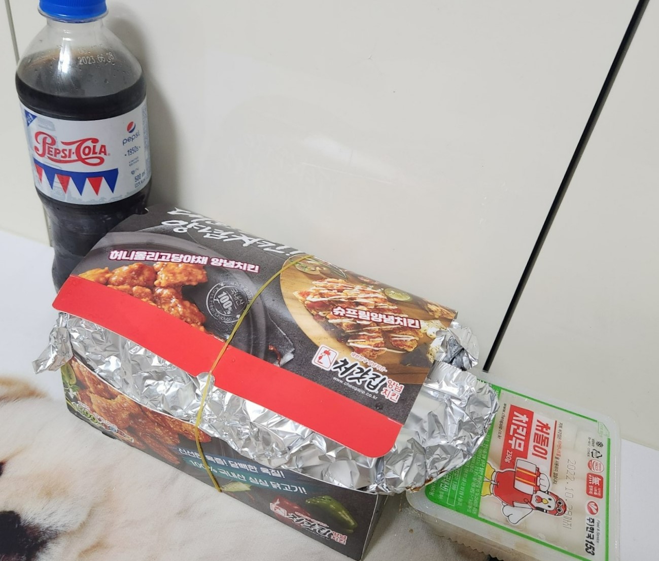 게다가 눈꼽만한 크기의 캔콜라가 아닌 500ml 펩시콜라를 기본으로 줍니다. 사실 탄산을 좋아하기 때문에 사이다를 따로 준비했지만, 처갓집 양념치킨은 기본 구성인 펩시 한 병으로도 둘이서 마시기에 충분한 양입니다.