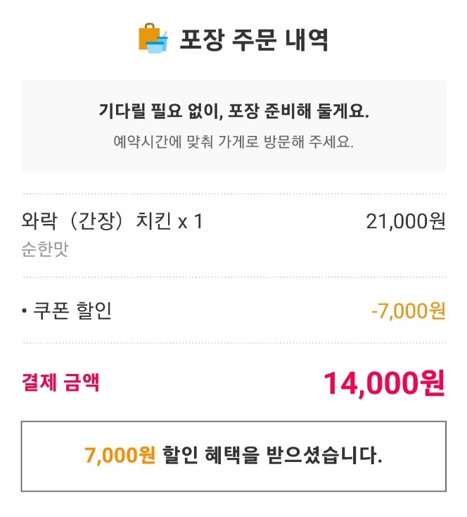 와락(간장)치킨 : 21,000원